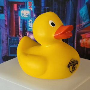 A classic duck with “Rockstars IT” branding, picked up during a tech event. |